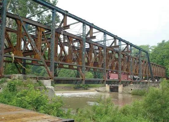 這座印第安工廠橋最初建于1913年,跨度為177ft.(約53m),單車道,采用雙腹材普拉特下承式桁架。橋梁性能日漸退化,直到它引起了懷安多特縣的工程師Michael B. Kohl的注意。鑒于這座橋梁的特殊位置,Kohl啟動了一個項目來考察如何對該橋梁結(jié)構(gòu)進行保護。俄亥俄州曼斯菲爾德的一家土木/結(jié)構(gòu)公司——Richland工程有限公司被選中進行修復方案的制訂,并最終給出了橋梁的修復方案。